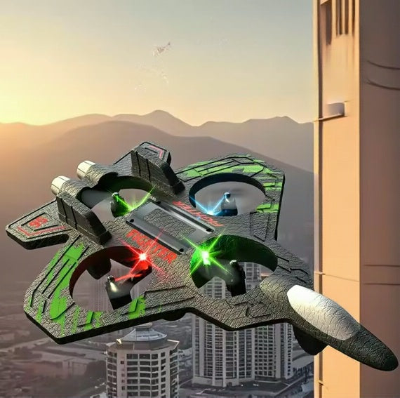 Θεαματικές αεροπορικές ακροβασίες: Σχεδιασμένο για να μοιάζει με πραγματικό μαχητικό αεροσκάφος, αυτό το παιχνίδι προσφέρει μια ποικιλία ακροβατικών φιγούρων: αισθητήρας βαρύτητας, αεροπορικοί κύκλοι, περιστροφές, στροφές 360°, γρήγορη απογείωση κ.λπ. Αναπαράγει με ακρίβεια την αίσθηση της πτήσης με πολεμικό αεροσκάφος, πραγματοποιώντας το όνειρο όλων των αγοριών να ελέγχουν το δικό τους μαχητικό drone. Ελέγξτε την πτήση σας: πιλοτάρετε το αεροπλάνο σας ενώ πετάει στον ουρανό, για μια συναρπαστική εμπειρία πτήσης. Εξοπλισμένο με υπέροχα φώτα LED, είναι ιδανικό για δημιουργικές επιδείξεις πτήσης και νυχτερινές παραστάσεις.